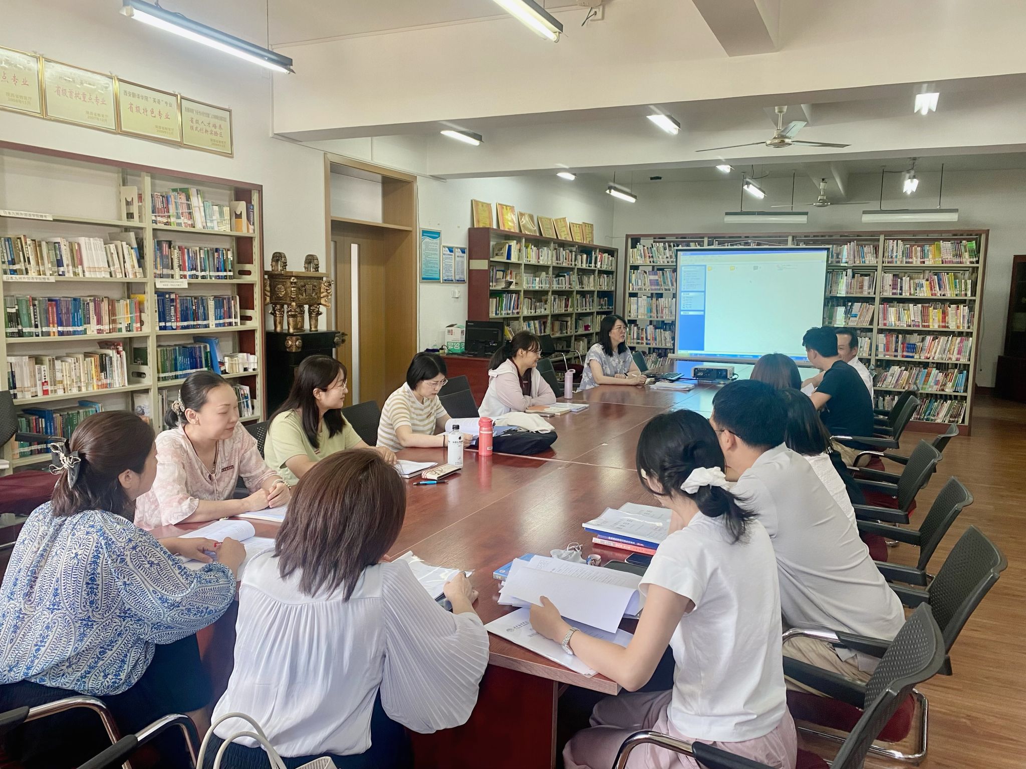 在活动开展过程中,各专业教研室分讨论了如何科学地进行教学设计,包括课程的引入、概念的诠释、理论内容讲解、案例分析过程和结论等,以及如何围绕OBE理念形成一流的课堂教学,以全面提高教学效果,更好地培养出具备优秀语言实践能力和跨文化交际能力的外语人才。