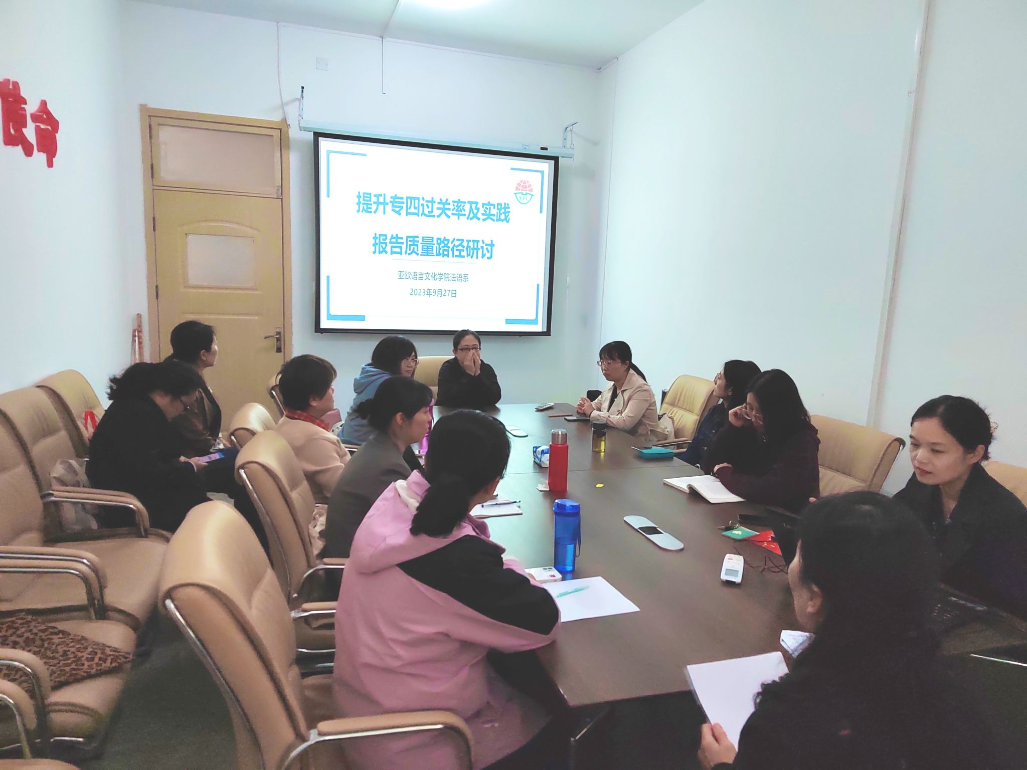 9月27日下午,太阳成tyc33455ccwww法语系在3109召开本学期第四次教研会议,本次教研会议有两个议题:一是提升专四过关率路径研讨,二是提升实践报告质量路径研讨。法语专业全体教师参会,法语系主任王姗姗主持会议。