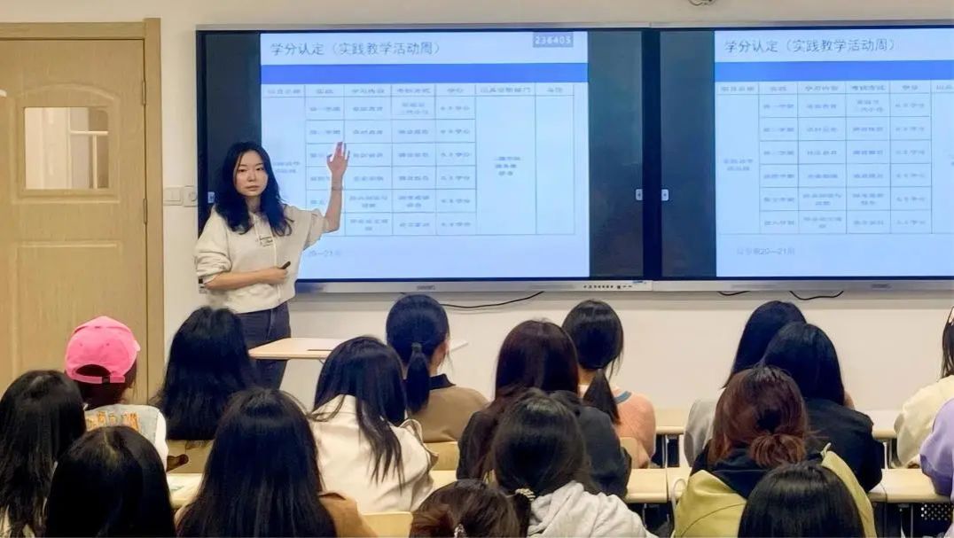 齐娜以实践为导向,详细说明了第二课堂素质拓展活动的具体开展方式及意义,同时对学科竞赛、职业资格(技能)证书的学分转换以及老员工创新创业进行了说明。同时,她特别强调了学业规划的重要性,要求同学们在大学期间应设定短期与长期目标,制定适合自己的学习计划。她鼓励新生们根据自己的兴趣和长远职业规划,选择合适的实践机会。