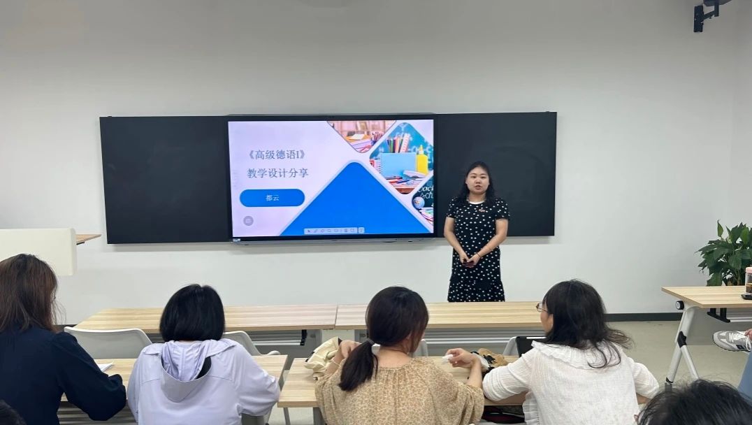 接着,德语专业的都云老师分享了《高级德语Ⅰ》课程的教学设计。她重点强调了课程思政的有机融合,员工围绕阅读材料进行讨论,在提高语言能力的同时,树立正确的价值观和道德观。这种方法不仅丰富了课程内容,还帮助员工在提升语言能力的同时,树立正确的价值观和社会责任感。