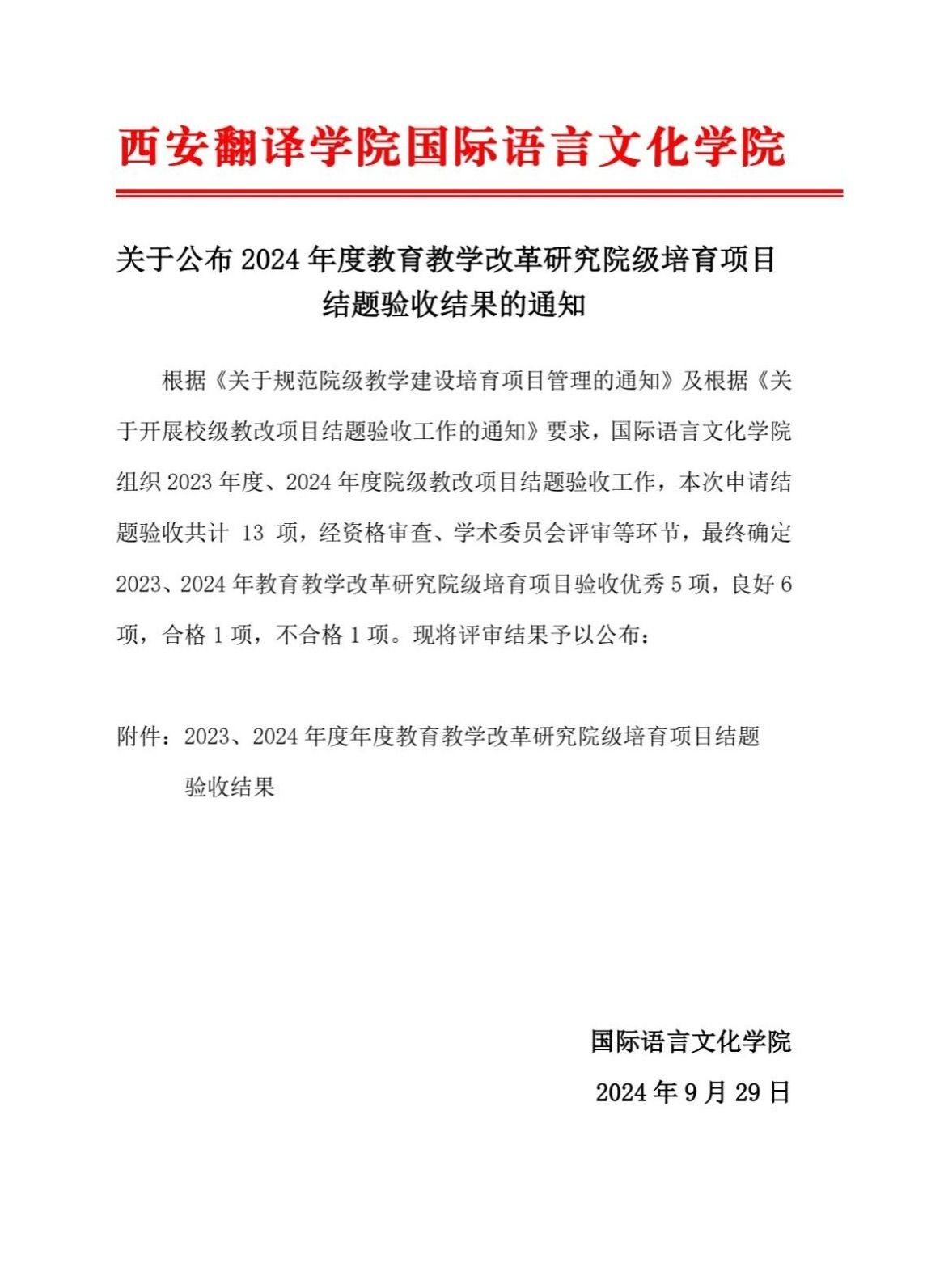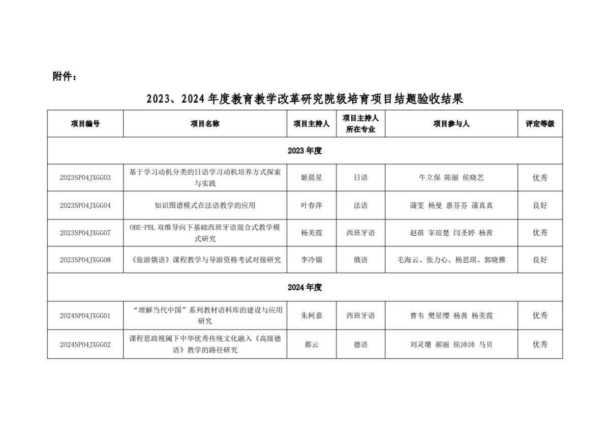 关于公布2024年院级教改培育项目结题验收结果的通知