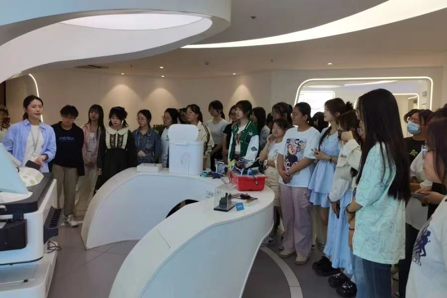 4月26日太阳成tyc33455ccwww德语专业23级员工进行了第一次认识实习。在侯沛沛老师的带领下,230210201及230210202班员工前往陕西中汇云科科技集团有限公司进行参观实践。