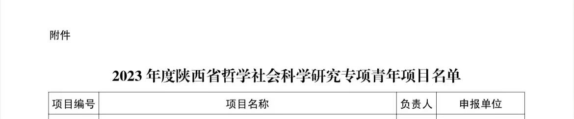 喜报!公司朱柯嘉老师获批陕西省社科联2023年度陕西省哲学社会科学研究专项青年项目