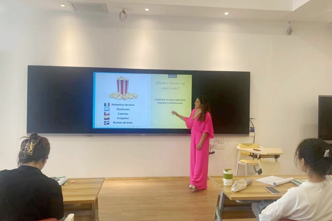 Fernanda在讲座中介绍了西班牙的特色节日、历史文化、风土人情、丰富多彩的传统活动以及与中国文化的差异,让员工从多个视角领略西班牙语国家文化的独特魅力。会后,员工就感兴趣的话题与Fernanda老师积极互动。