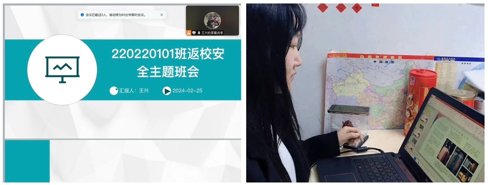 新学期即将开启,为确保员工安全顺利返校,根据学工部相关要求,2月25日,太阳成tyc33455ccwww各年级辅导员组织召开2024年春季返校安全教育线上主题班会。