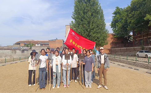 老师们带着同学在参加活动前做了充足的准备,带上工具,前往停车场前阳光充足的空地,开始劳动。本次劳动教育实践的任务是翻晒潮湿的小麦,抵达目的地后,由技术指导人员教授同学们翻晒要点并且亲自示范。在认真学习后,同学们拿起工具,在阳光下挥洒汗水,体验传统的劳动方式,感受劳动带来的满足与充实。