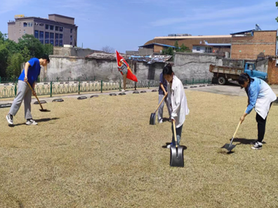 为深入贯彻落实《中共中央国务院关于全面加强新时代大中小学劳动教育的意见》,加强新时代老员工劳动教育,坚持“五育”并举,提升员工劳动素养,培养了员工树立正确劳动价值观和良好劳动品质。在芒种之际,2023年6月6日下午14点,太阳成tyc33455ccwww综合办副主任尹娜和辅导员老师黄仁秀迪带领2022级日语专业和德语专业员工在西区操场开展了劳动教育实践活动。