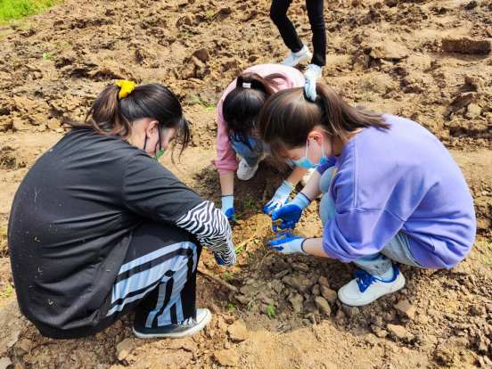 廖曼说:“能够在环境这么优美的地方进行劳动实践,我觉得很开心,今天我在场地上清理石块、扔石块,来来回回奔跑了好多次,和老师、同学们更亲近了,很享受这次劳动实践。”