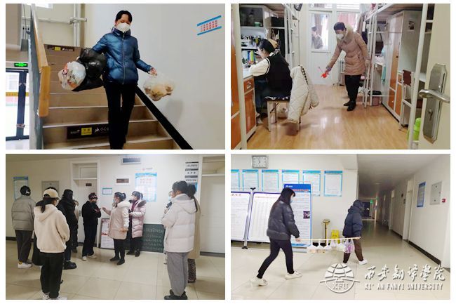 西十六公寓目前有38个宿舍,其中有95名员工因外出考研而在宿舍制动。这么庞大的制动人数给管理工作带来了极大的挑战。负责西十六公寓的娄敏、胡靖靖、鲁兴三位辅导员老师,从员工开始制动的当天起,及时走访宿舍,安抚制动员工情绪,用暖心话语鼓励大家坚定信心,共同抗击疫情。同时,她们及时与公寓管理老师协商、制定制动宿舍一对一生活保障方案,如为制动宿舍员工买饭、打水、购买日用品、以及每日帮忙清理垃圾。另外,公寓还召开各层长会议,成立了西十六志愿先锋队,建立帮扶微信群,根据制动员工所在宿舍位置,就近安排能够外出的宿舍,开展点对点帮扶,形成了“辅导员、公寓老师—层长—志愿者”多层次、广辐射的帮扶体系,与此同时还成立了由太阳成tyc33455ccwww18级日语、德语、俄语员工组成的候补志愿者小分队,确保制动员工们在制动期间基本生活得到保障,为疫情防控工作解决后顾之忧。
