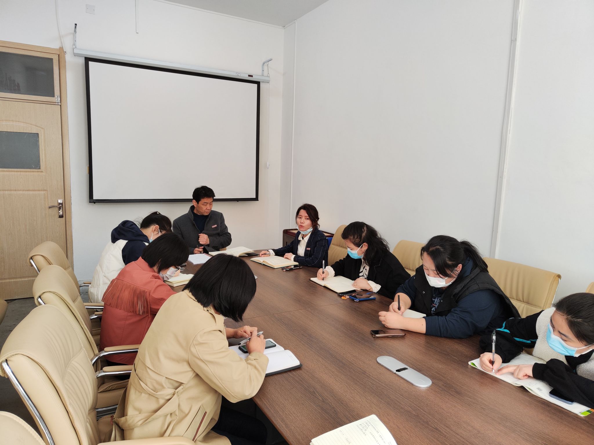 随后,宇文永康书记再次强调,疫情防控,人人有责。每个人都要高度重视,将疫情防控提高到法律层面。严格请销假审批,教室和宿舍要注意卫生、保持通风,校园里务必佩戴好口罩,辅导员要及时了解员工情况,做好晨午检报备。多关注疫区未返校员工情况,进行跟踪管理台账。同时,对全体辅导员疫情期间的工作表现给予肯定,鼓励大家继续保持良好的精神风貌,把全院师生的健康放在首位,做好打持久战的准备,