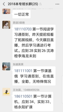 各班班长就线上学习中,各班出现的各种问题进行反馈与讨论