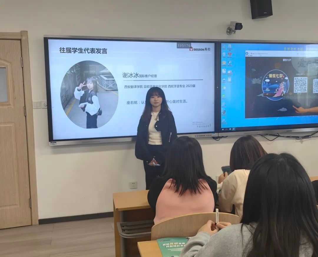 校老员工就业创业服务指导中心副主任赵东良简要介绍了该单位情况,随后,公司2023届优秀毕业生、宁波高松国际销售工程师谢冰冰进行宣讲,使员工对用人单位基本情况有了更直观深入地了解。