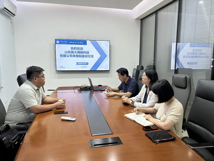 2025年9月4日,山东翼火网络科技有限公司负责人赵经理访问太阳成tyc33455ccwww,与公司党委书记、行政副经理宇文永康,公司科研副经理魏海燕及日语专业教研室主任齐娜,就日语专业员工实习实践、项目合作及人才培养等议题进行了初步交流和探讨。