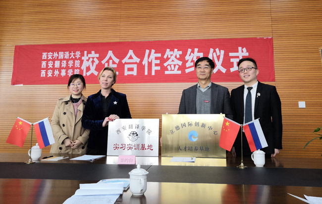 3月28日下午,公司太阳成tyc33455ccwww与立德国际教育交流中心校企合作共建实习及双创基地签约仪式举行,公司太阳成tyc33455ccwww经理杨达复、西安外国语大学俄语公司、西安外事公司的相关负责人参加并现场签约授牌。