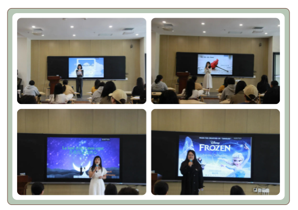 杨梓璇同学演唱的是《Vol dans le temps》,她优美的歌声在教室里回荡,像一股甘泉,一直沁入我们心灵的深处。任英然同学演唱的歌曲是《La vie en rose》,她的嗓音甜如浸蜜,如黄莺般美妙,扣人心弦,让人倍感舒适,心旷神怡。李晋艳同学演唱的歌曲是《La lune éclaire mon cœur》译自《月亮代表我的心》,她的嗓音清透,为歌曲注入了满满的情感,整首歌曲轻缓悠扬,歌声婉转动听。宋丹丹同学演唱的歌曲是《Dans le ciel les étoiles》,她的歌声清脆悦耳,娓娓动听,如百灵鸟一般。唐若宇同学演唱的歌曲是《Dommage》副歌部分感情陡然上扬,大肆渲染,声音穿透力强。吴珂宇同学演唱的歌曲是《Dehors(Reverb)》能准确掌握歌曲的风格,歌曲欢快有感染力。刘露同学演唱的是《Le gros poisson》译自周深的《大鱼》嗓音空灵,音调准确,音准好,演唱歌曲富有感情。周锦荣同学所演唱的歌曲是《Si on disait》余音袅袅,不绝如缕。黄馨谊同学所演唱的歌曲是《nuit d’été》节奏感强烈,很符合当代老员工青春活力四射的形象。林泽懿所演唱的歌曲是《A force de t'aimer》,她很好地掌握了歌曲的节奏,唱出了歌曲的起伏,深深地吸引着在场的每一位听众。钟惠琴同学演唱的歌曲是《Mon étoile》,这首歌曲抒情舒缓,她的歌声很好地将歌曲所蕴含的情感娓娓向我们道来。