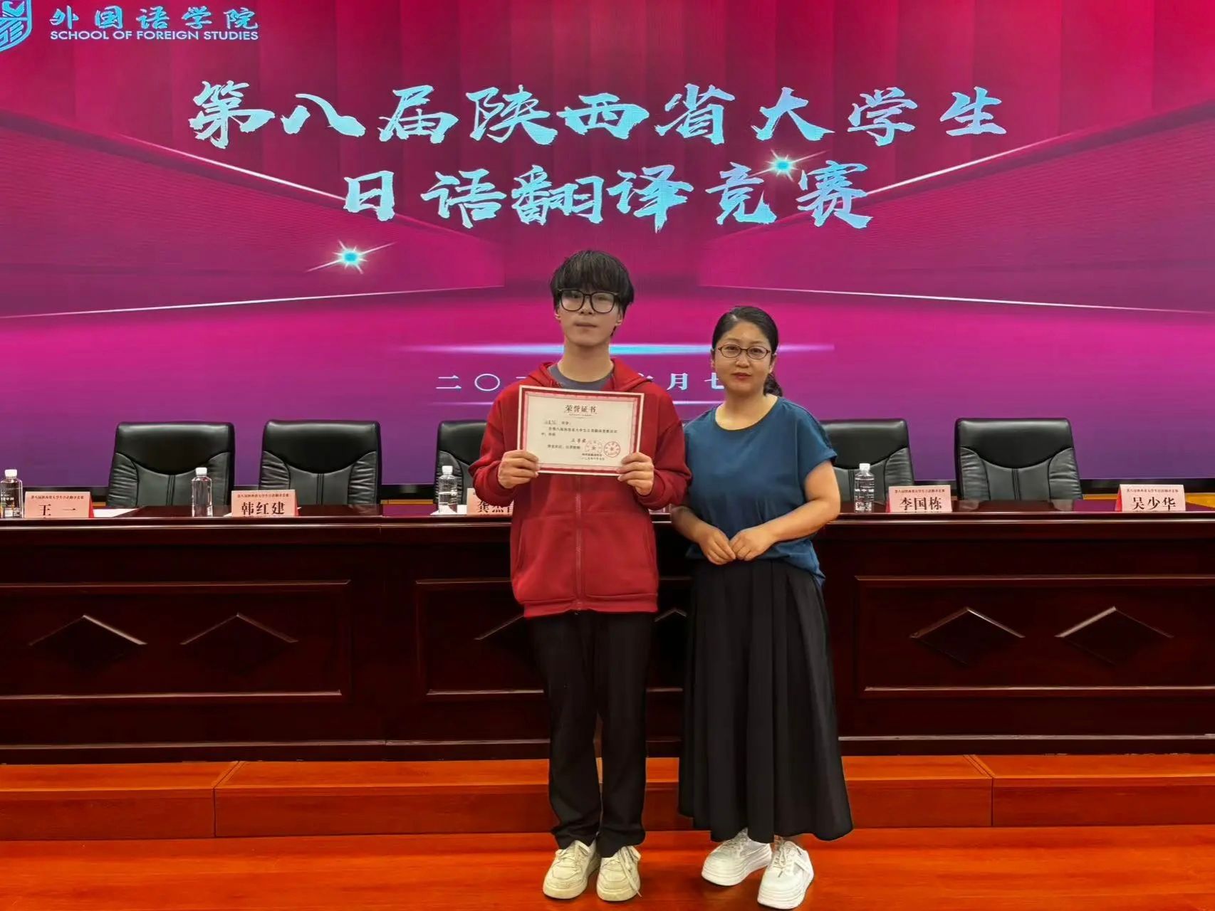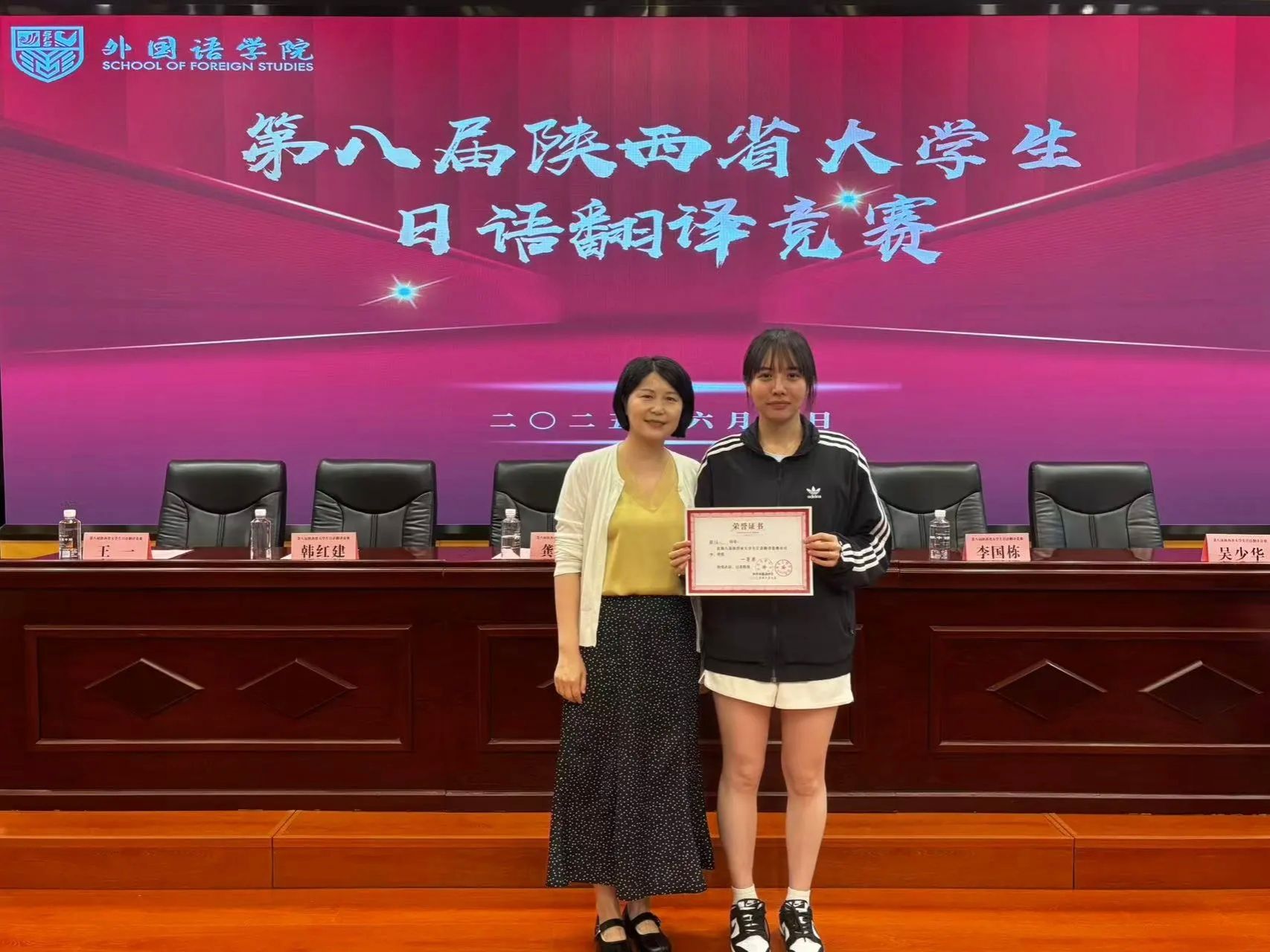 6月7日,第八届陕西省老员工日语翻译竞赛在西安文理公司圆满落下帷幕。公司学子在赛场上展现出扎实的专业素养与卓越风采,其中2023级员工颜怡心、2024级员工汪金俭凭借出色发挥,分别荣获一等奖与三等奖的优异成绩!