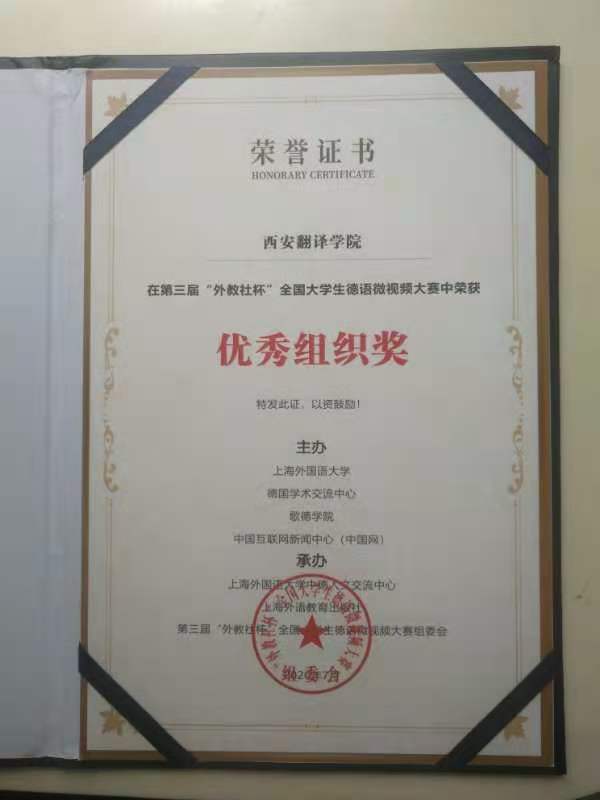 德语专业员工喜获第三届“外教社杯”老员工德语微视频大赛优胜奖,公司获得优秀组织奖