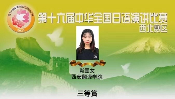 西译学子肖雯文荣获第十六届中华全国日语演讲比赛西北赛区预赛三等奖