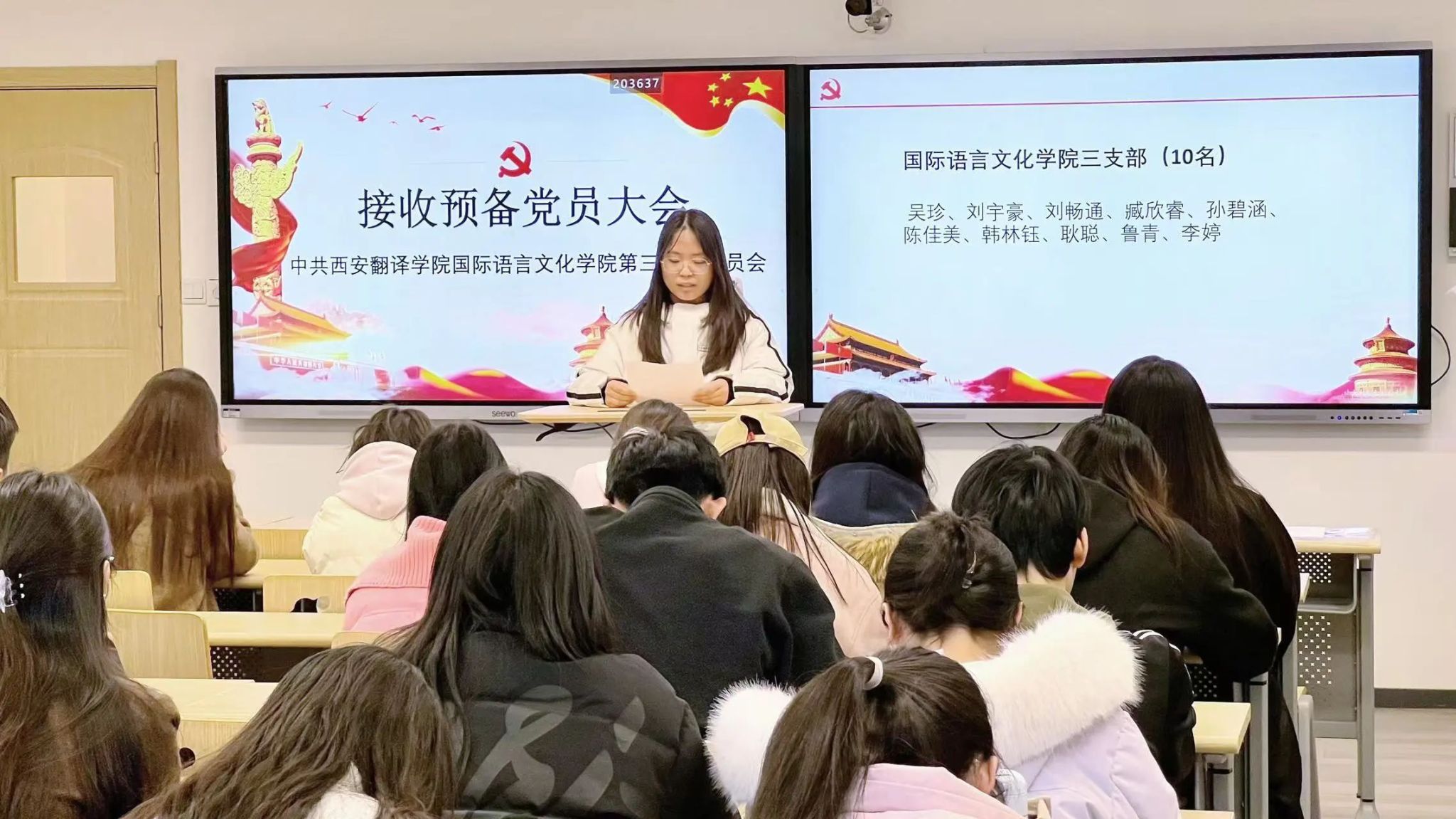 会议伊始,黄丽娜详细介绍了到会情况和会议主要议题。随后,由发展对象们逐一宣读《入党志愿书》,其中吴珍等10位发展对象向大会汇报了他们在培养期内对党的认识、入党动机、个人履历、家庭背景及主要社会关系,以及需要向党组织说明的问题。入党介绍人向大会介绍了发展对象的具体情况,在指出了他们在某些方面的不足的同时,强调发展对象们基本符合党员标准,并同意推荐他们加入中国共产党。