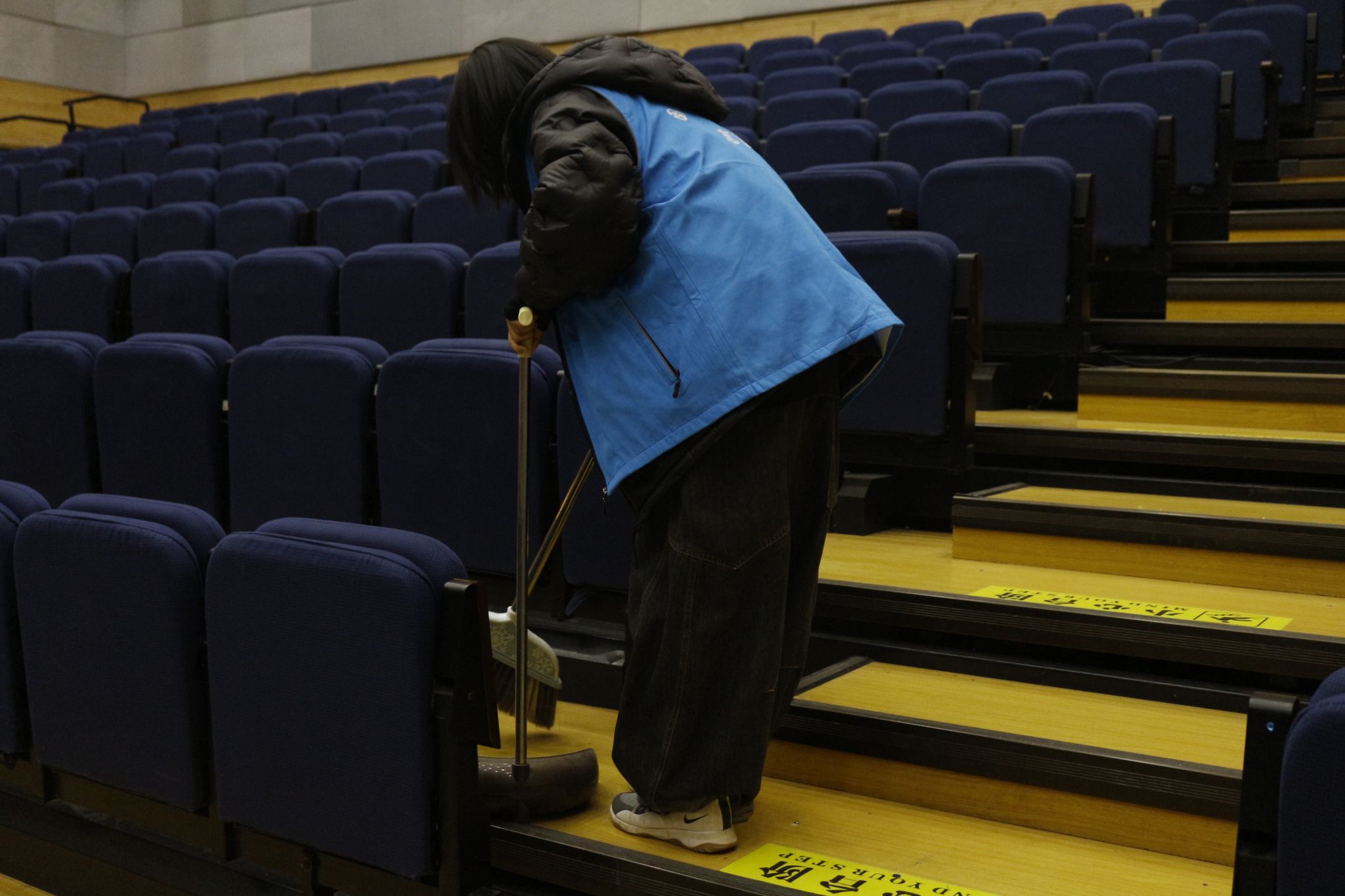 志愿者们认真打扫东区演播大厅,以无私奉献的精神践行了全心全意为人民服务的雷锋精神。他们细致地擦拭座椅、清扫地面、整理设备,确保演播大厅焕然一新,为公司的文体活动场地营造了一个整洁、舒适、充满活力的环境。同时,志愿者们还积极参与整理器材、布置活动场地,保障每一次文体活动顺利进行。在这个过程中,他们展现了新时代青年的责任与担当,不仅为同学们提供了更好的活动空间,也进一步丰富了校园文化生活,彰显了公司积极向上的精神风貌,为公司文化体育建设贡献了自己的青春力量。