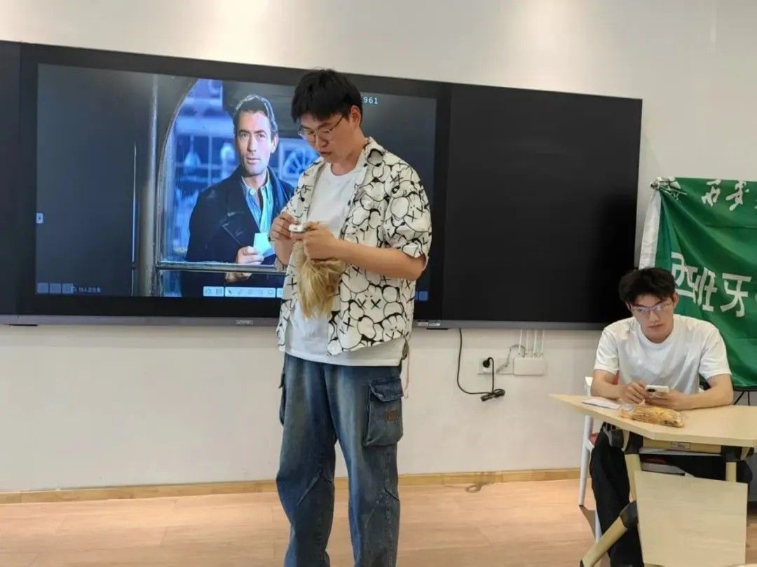 第一组由24级陈圣喆、王晴、刘田一、尹国宁带来,讲诉了桌子上的三明治神秘消失,由一个角色寻找缘由展开的神奇探秘故事。