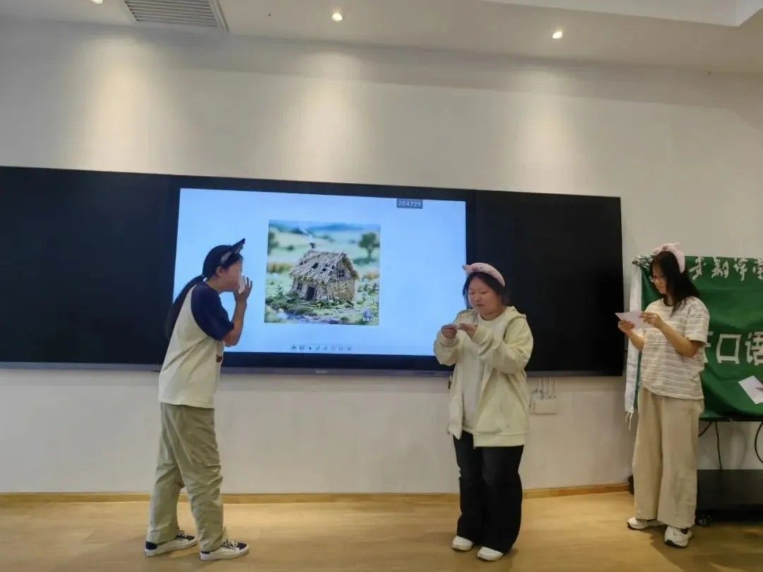 第四组由24童嘉怡、崔妍曦、高涵、蒋思妤、敖倩文带了,讲述了三只小猪为抵御大灰狼建造不同房子,最终小弟的砖屋成功抵御大灰狼,三只小猪合力将其赶走的故事。