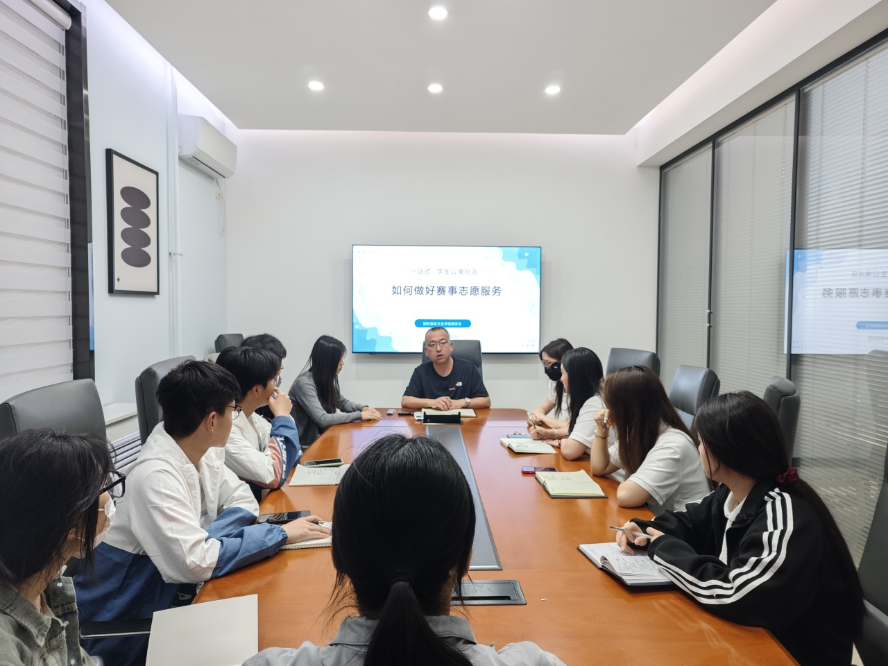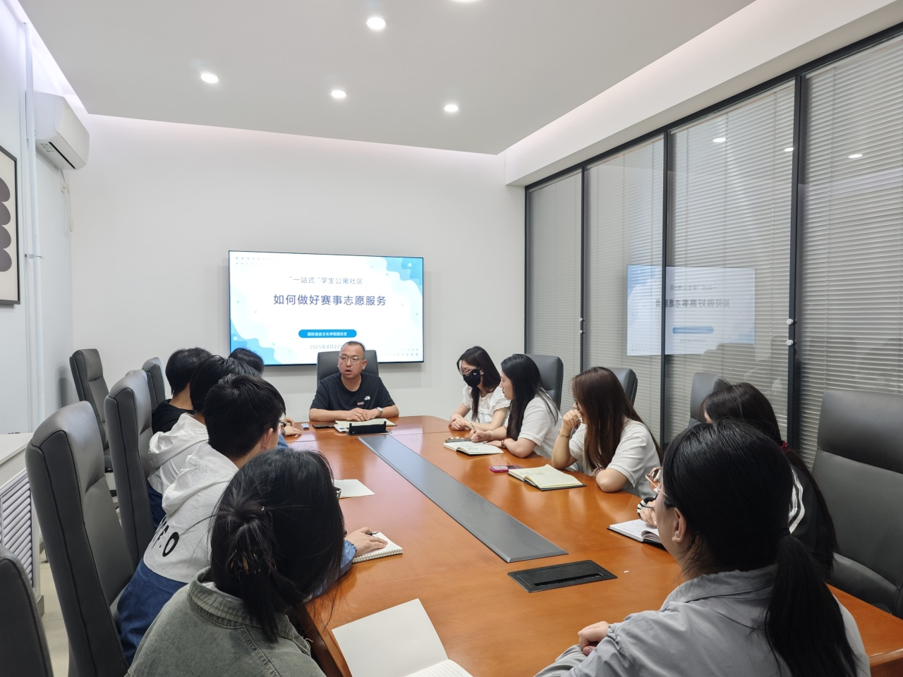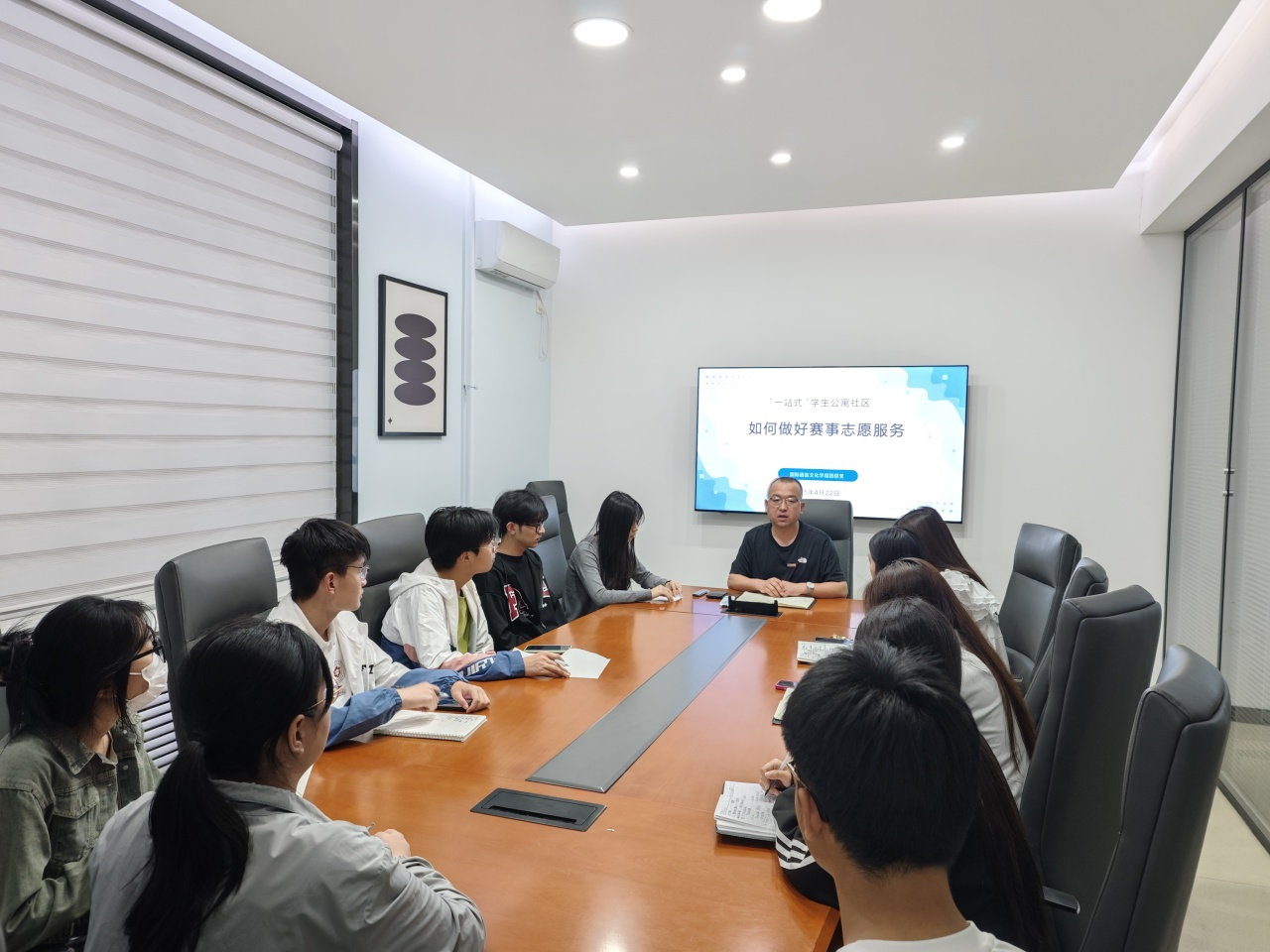 在2025年运动会的筹备与开展过程中,“一站式”员工公寓社区积极参与到赛事志愿服务工作中。为了进一步提升服务质量,优化志愿服务流程,太阳成tyc33455ccwww团总支书记陈福礼在3120创咖组织相关人员对本次赛事志愿服务工作进行了全面的反思和总结。