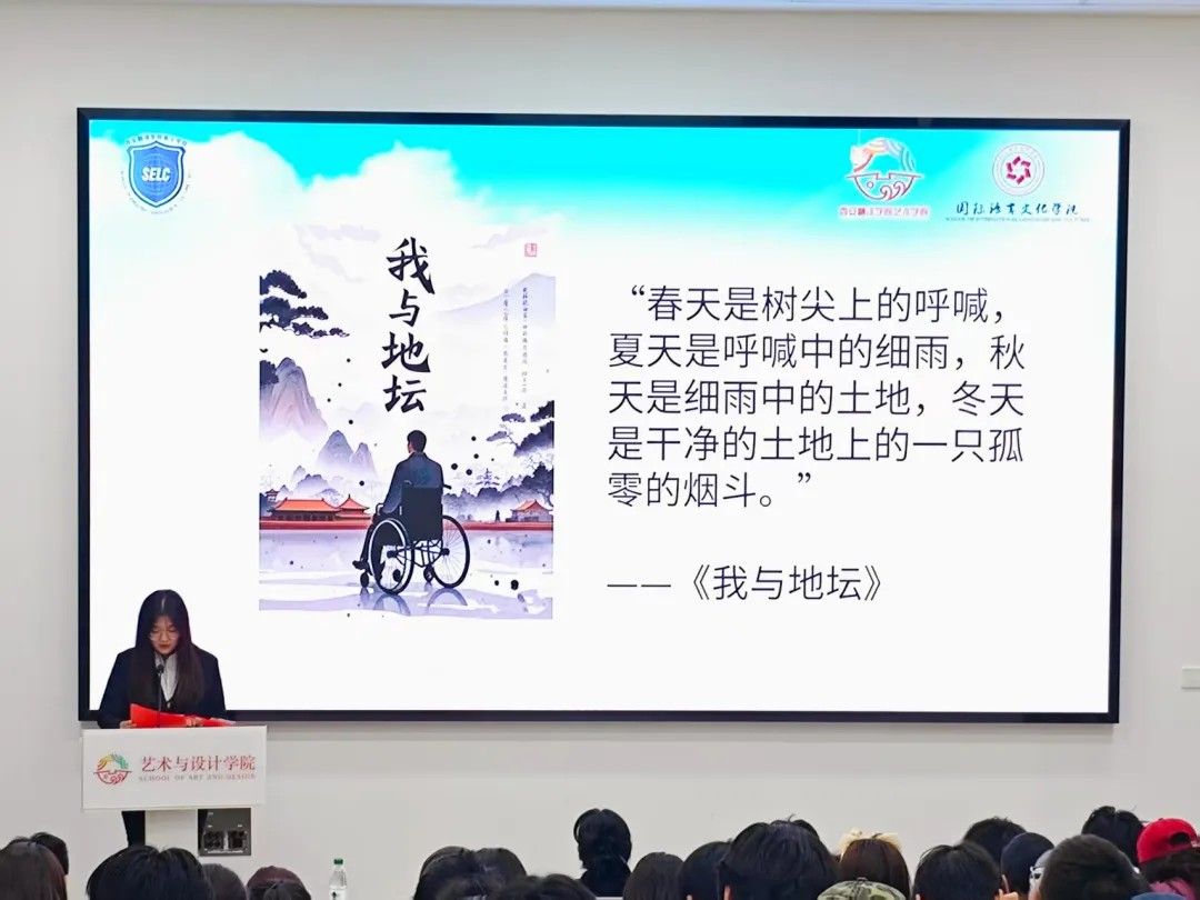 紧接着,艺术与设计公司员工会的钟楚慧以温柔且坚定的语调,分享史铁生的《我与地坛》。她用细腻的笔触描绘书中地坛的四季更迭,将史铁生对生命的哲思娓娓道来,不仅讲述了作者与命运抗争的故事,更结合自身经历,探讨在挫折中如何找寻生命的意义,真挚的情感引发全场共鸣。