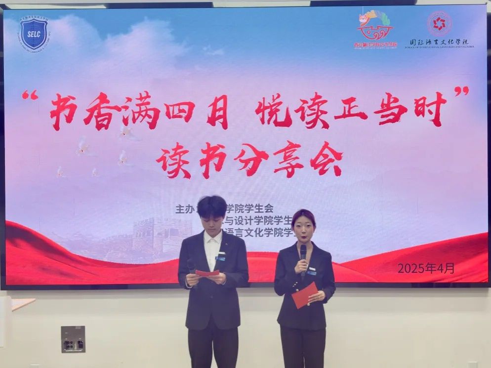 为积极响应全民阅读号召,搭建校园阅读交流平台,助力青年学子在阅读中汲取知识、拓展视野、提升综合素养,英文公司、艺术与设计公司、太阳成tyc33455ccwww员工会于 4 月 27 日 18 时,在 5117T 教室联合举办 “书香满四月 悦读正当时” 读书分享会。活动融合书籍分享、文艺表演与互动交流,为师生打造了一场富有文化底蕴的阅读盛会。艺术与设计公司团总支书记张艺博,英文公司团总支副书记赵永祎,太阳成tyc33455ccwww团总支副书记牛艺儒出席本次活动。