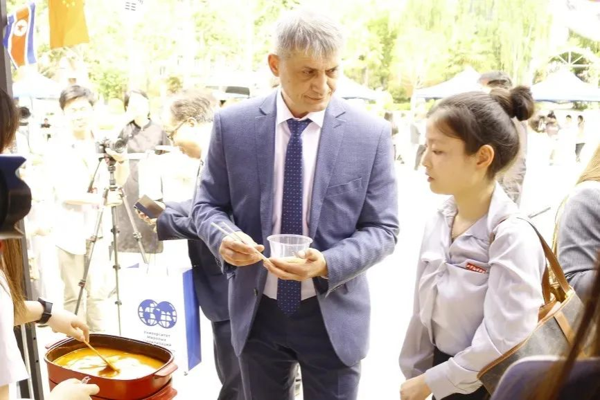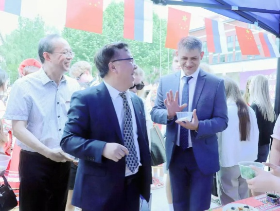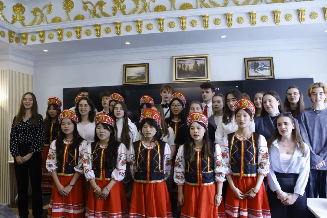 与会领导及师生首先来到俄罗斯体验馆,开启一段充满异域风情的文化之旅。俄语专业的员工和俄罗斯职工一起以精彩的唱歌表演率先登场,他们用纯正的俄语和饱满的热情,演绎了多首经典俄罗斯歌曲,激昂的旋律与嘹亮的歌声,瞬间点燃现场气氛,将俄罗斯音乐的独特魅力展现得淋漓尽致。