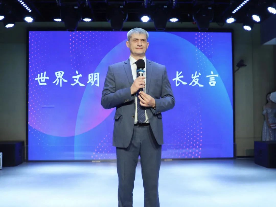 随后,世界文明大学副董事长亚历山大・阿列克谢耶维奇发表致辞,他阐述了多语种学习与文化互鉴的重要性,为现场师生带来深刻启发。