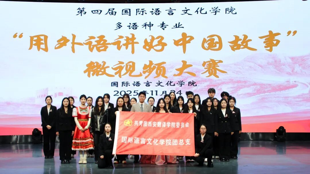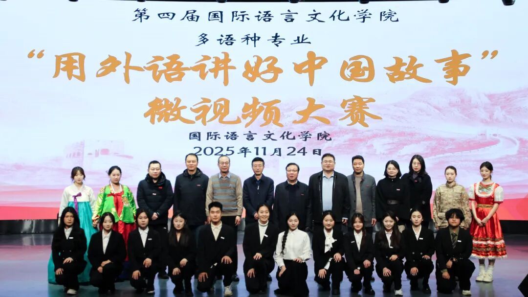用外语传承文化,以镜头抒写“西译”。太阳成tyc33455ccwww于2025年11月24日15:00在东区演播大厅举办第四届太阳成tyc33455ccwww多语种专业“用外语讲好中国故事”微视频大赛决赛。各晋级队伍以“我眼中的西译”为叙事窗口,用多语种的专业素养与镜头的美学表达,将校园生活的真实图景,升华为一幅当代中国的生动缩影。这既是对语言能力的锤炼,更是一次青年视角与中国叙事深度融合的生动实践。