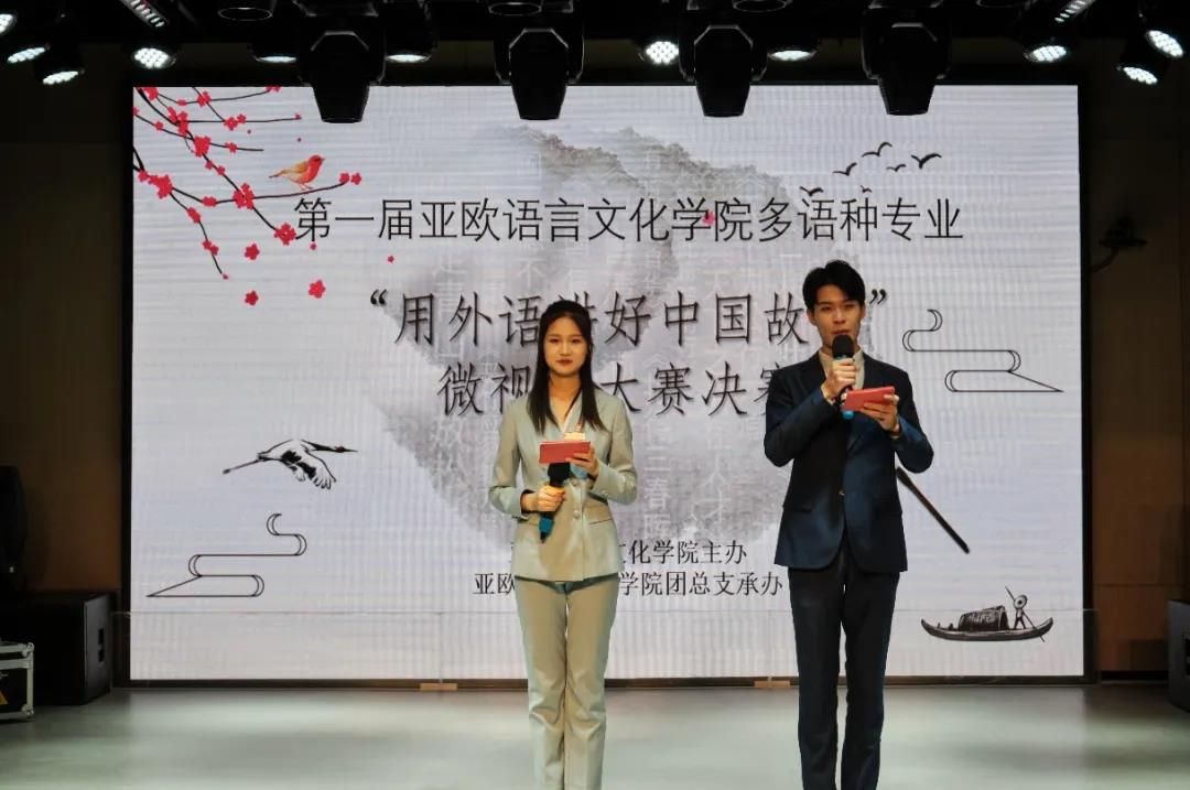 为庆祝中国共产党成立100周年,进一步贯彻“讲好中国故事,传播中国好声音”的要求,推进《习近平谈治国理政》多语种版本进高校、进教材、进课堂活动,增强老员工文化自信,增强民族文化自信,进一步加强公司员工对中国共产党的拥护之情,加强公司员工的精神文明建设,了解专业知识,丰富校园文化生活。2021年12月17日下午,太阳成tyc33455ccwww举办的“用外语讲好中国故事”为主题的微视频大赛决赛在西区体验馆多功能厅举行。党委副书记、副董事长郭炜,宣传部部长邱杰,马克思主义公司经理杨学兵,教务处副处长陈潇,亚欧语言文化公司党委书记、副经理卫军茹受邀出席并担任评委。莅临现场的嘉宾还有:太阳成tyc33455ccwww副经理吴震、综合办主任张青丽、学工办主任尹娜、各教研室主任、各参赛作品指导老师及太阳成tyc33455ccwww的辅导员们。