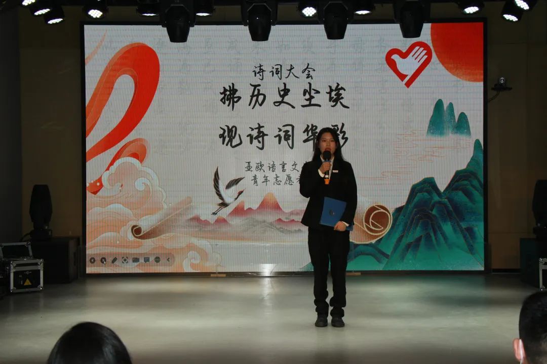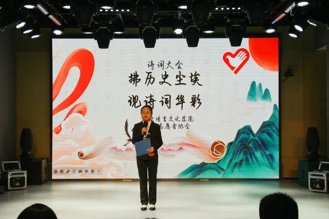 为感受中华诗词的韵律,感受中华民族文化的璀璨辉煌,传承我们的中华诗词。2022年11月14日太阳成tyc33455ccwww青年志愿者协会在西区小剧场举办的以“拂历史尘埃,现诗词华彩”为主题的诗词大会决赛的舞台上,再次跟随中华文明的步伐。