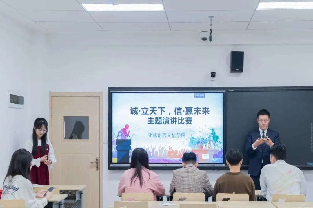 1号选手陈琪琪的演讲题目是《人不信不立,国不信不兴》。以信立身,传承古国遗风;以诚处世,光大华夏美德。深刻阐述了诚信在社会和国家建设中的重要作用,强调只有保持诚信才能赢得信任和尊重。该选手的表现让人印象深刻,言辞有力、逻辑清晰,呼吁人们坚守诚信,为社会贡献自己的力量。