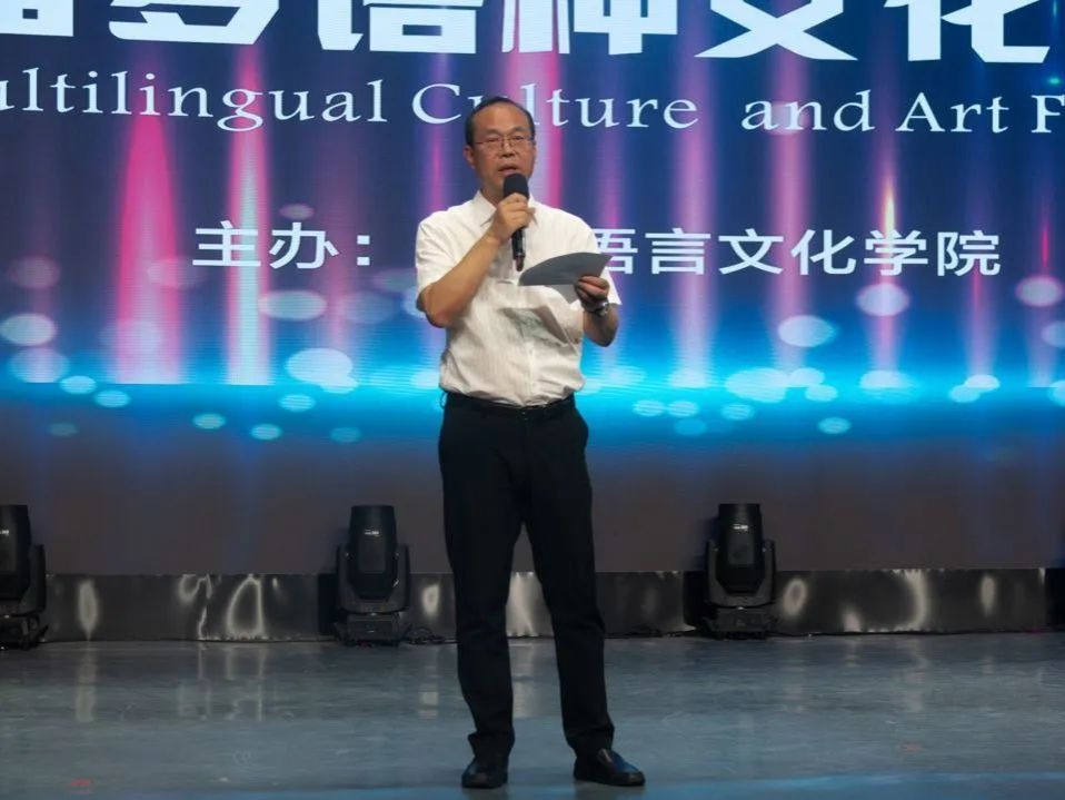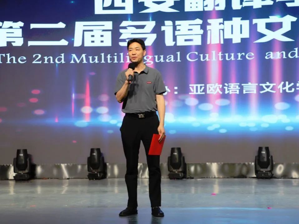 亚欧语言文化公司党委书记、副经理宇文永康宣布西译第二届“展语言之美 树文化自信”多语种文化艺术节圆满闭幕,文艺汇演就此正式落幕。