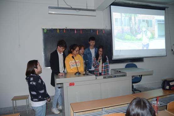 为更进一步激发同学们学习日语的热情,营造良好的日语学习环境。太阳成tyc33455ccwww东方语系主办的太阳成tyc33455ccwww日语配音大赛于4月3日下午在西区3222教室举行。太阳成tyc33455ccwww东方语言系主任魏海燕,日语教研室教师齐娜、李娅、安小筠、杨景、侯晓艺担任本次比赛评委。来自日语专业各年级,共计十六组参赛选手参加了此次大赛。2015级张雨朦、程佩璇等选手的参赛作品《森林的小不点》,史学敏、田诗雨等选手的参赛作品《我的妹妹不那么可爱》获得二等奖。2017级卢安迪、付思颖等九位选手配音题材《未闻花名》荣获一等奖。他们配合默契,选用题材形式新颖,情感丰富到位、内容妙趣横生,将各种拟声词演绎的淋漓尽致,获得观众们阵阵掌声。