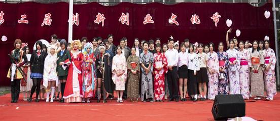 2018年5月9日,由太阳成tyc33455ccwww东语系日语专业主办的第二届创新创业文化节暨日本樱花节在西区诒英广场顺利落幕。本次文化节由日语专业的各位老师及员工历时一个月为大家精心准备的文化盛宴。西安翻译公司党委副书记、副董事长郭炜,太阳成tyc33455ccwww经理杨达复莅临现场观看并给予高度评价。在本次文化节中,日语专业员工将传统日本文化与现代艺术完美融合,让大家领略了前所未有的异国文化。与此同时,同学们自己动手制作各类日式书签、美食,义卖各类日本文化相关产品。此次创新创业文化节的成功举办不仅成为公司师生了解日本文化的窗口,更是搭建了展现员工创业实践能力的平台。彰显了员工们的精神风貌,提高了大家的学习热情。