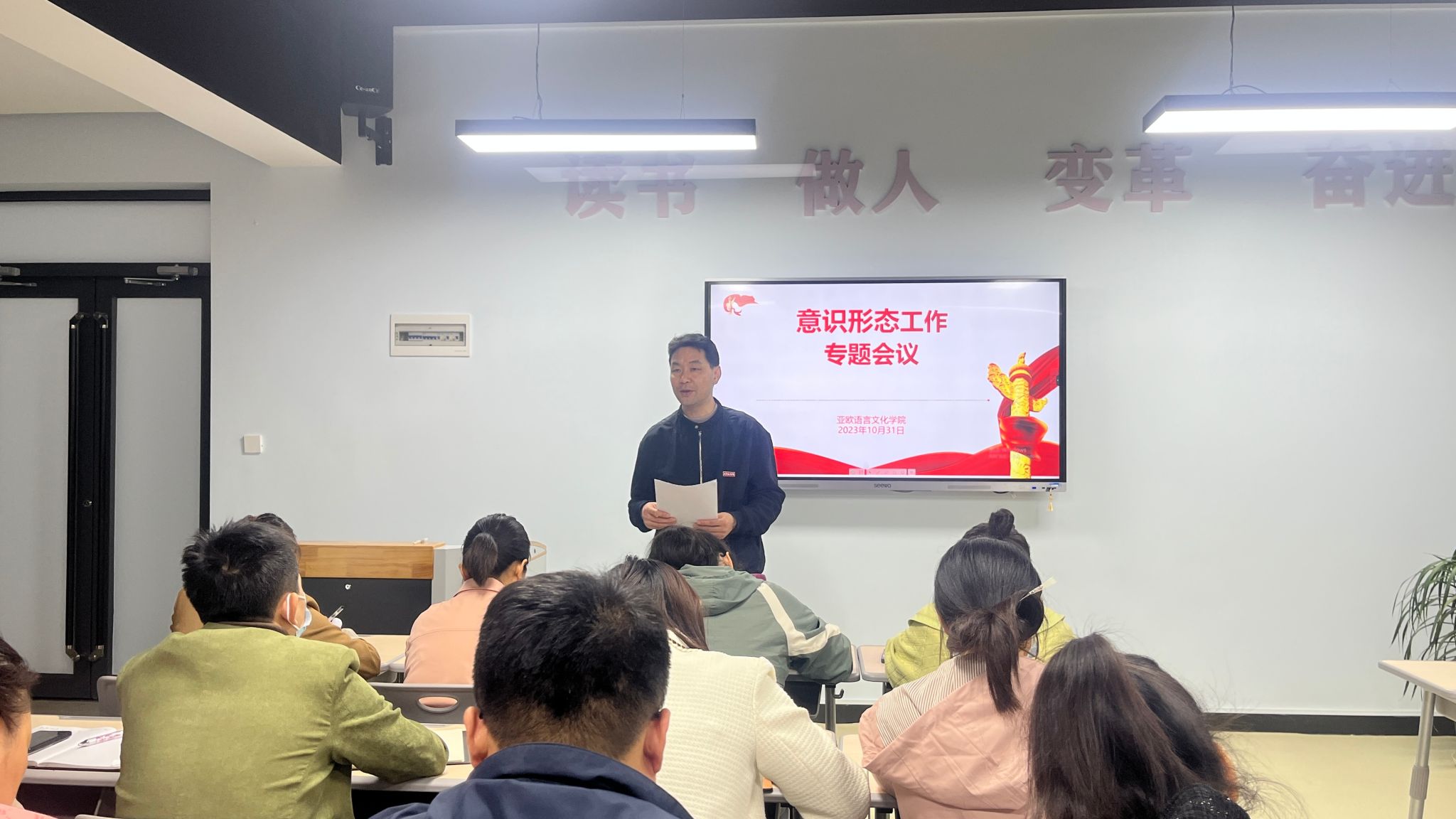为进一步加强师德师风建设,营造风清正气的育人环境和良好的舆论氛围,10月31日下午,公司召开师德师风建设与意识形态工作专题教育会。公司党委书记、副经理宇文永康,学工办主任尹娜,各系主任及全体辅导员参会。