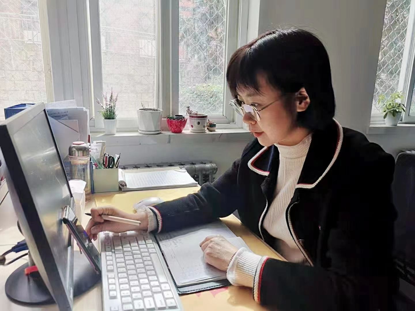 每到换季时,蒋敏都会在班级群里提醒同学们注意季节变化,预防疾病等。每周五也会温馨提示员工注意交通安全,及时返校。她时时刻刻关心员工的身心健康,及时处理员工突发事件。至今,已与上千名同学在西译美丽的校园相遇,与员工相处的点点滴滴都是她抹不去的回忆。