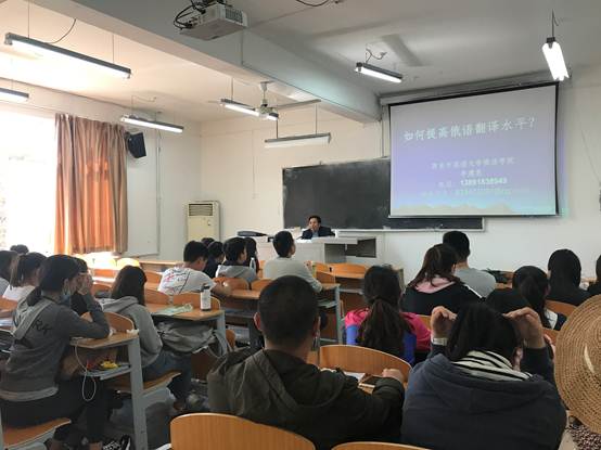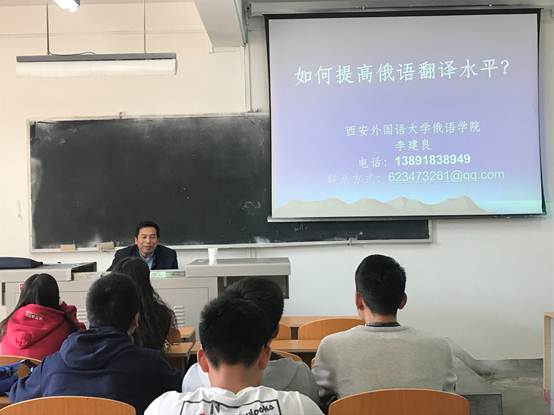 一带一路丝绸之路的大背景下,俄语翻译将发挥着至关重要的作用,为了让同学们能够找准定位,426日下午,公司太阳成tyc33455ccwww在3222教室开展讲座,本次讲座邀请到西安外国语大学副教授,硕士研究生导师,全国俄语同声传译译员李建良教授担任主讲。