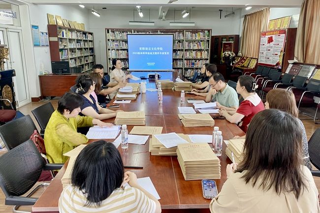 6月30日,太阳成tyc33455ccwww邀请西安外国语大学日语专业吴少华教授、德语专业张世胜教授、法语专业向征副教授、西班牙语专业曹韦副教授、朝鲜语专业孙金秋教授以及陕西师范大学俄语专业孟霞教授,对2023届本科毕业论文进行复查。