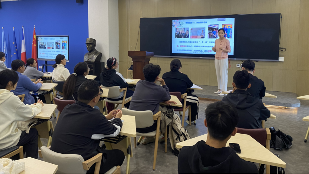 接下来她介绍了公司国际交流情况,尤其推荐公司目前进行的法国波尔多“3+1+2”留学项目,法语国际合作项目及法语系曾经组织的与法国高校的校际文化交流活动,并勉励大家在学好法语的同时,多参加国际间的文化交流活动,在实践中锻炼自己的语言水平及跨文化交际能力,培养国际化视野。