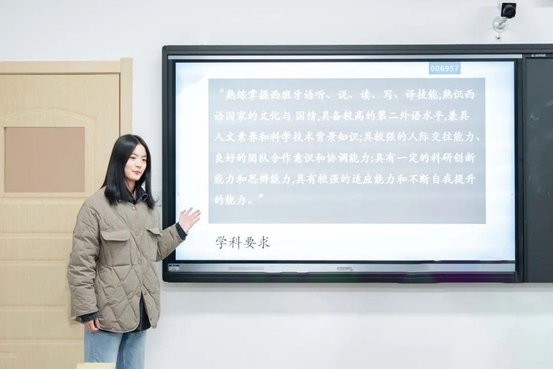 西班牙语专业的陈倩、王蒙爱为在场的2023级同学们提供了丰富的学习方法和经验,内容涵盖了学习方法、时间管理、备考技巧、学科思维等方面,具有很强的实用性和针对性。她们还分享了自己学习西班语用的APP,她们认为好的学习APP能够激发同学们的学习语言的兴趣,帮助大家更好地学习。