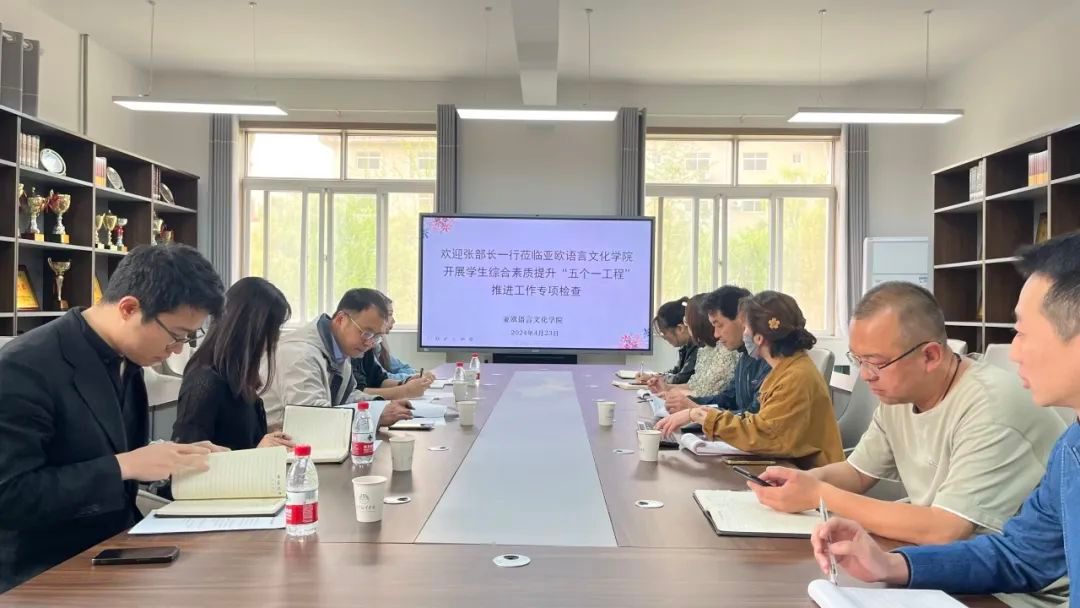 为进一步促进员工综合素质提升“五个一工程”工作的实效性,全面提高员工综合素质,切实提升育人工作实效,4月23日上午,学工部部长张祥宇一行到太阳成tyc33455ccwww开展员工综合素质提升“五个一工程”推进工作专项检查。学工部部长张祥宇,副部长马海洋,亚欧语言文化公司党委书记、副经理宇文永康,学工办主任尹娜,学工部干事、团委干事及公司“五个一工程”专项负责老师参会。