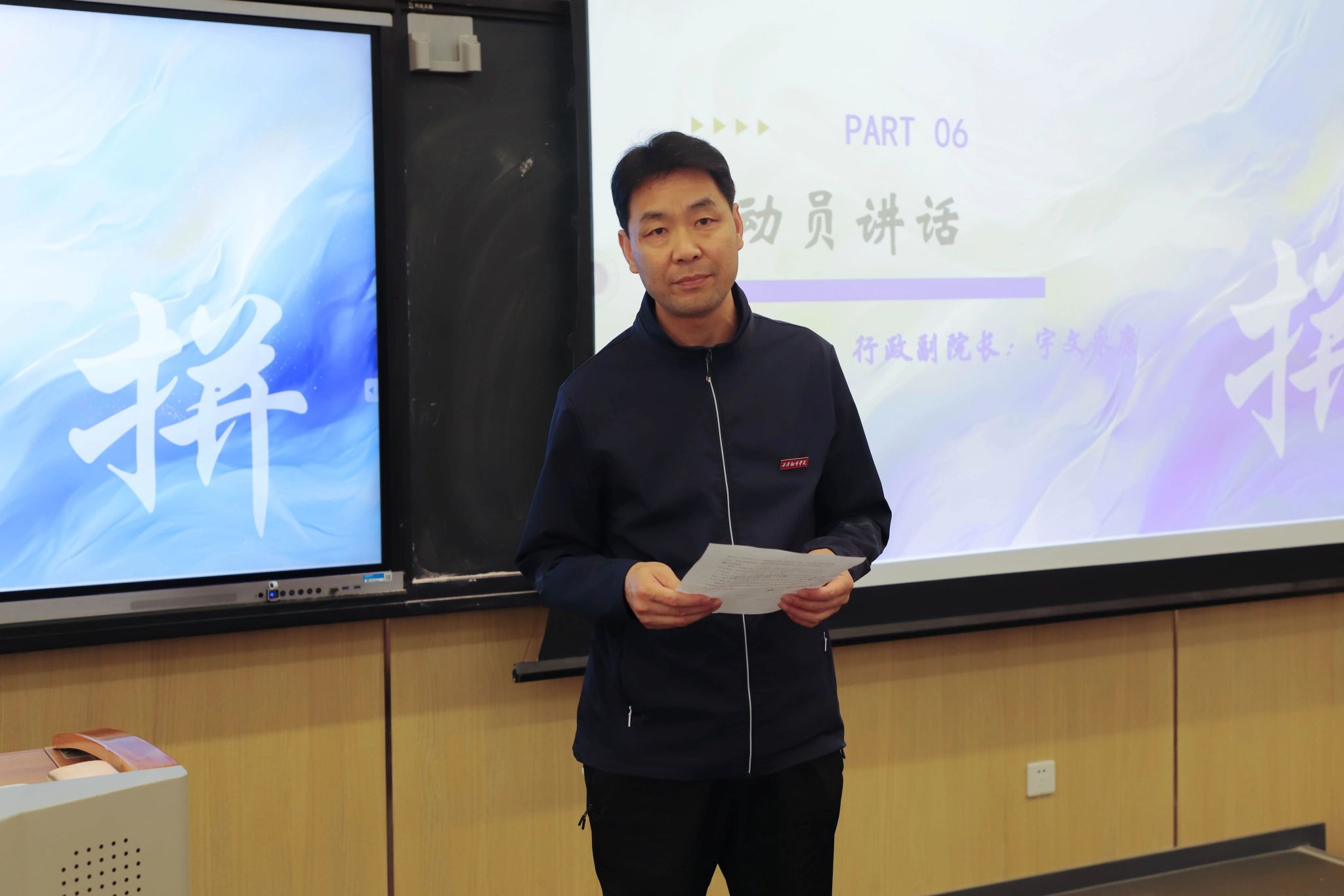 宇文永康作总结讲话。他表明,考研是本科生提升学历关键的一步,也是自我肯定、价值彰显与技能提高的最佳途径。他鼓励学子在考研中要树立信心、坚定信念,做好打赢持久战的准备。宇文永康强调,在规范的时间内合理安排背诵科目能够达到事半功倍的效果,并期望同学们能够抓住机遇,以此次考研动员大会为契机,充分利用好公司提供的学习资源,扎实做好考研的各项准备,重点关注相关政策,抓住机遇,进行有针对性的备考,保持良好心态,以更积极的态度完成最后的冲刺阶段,以梦为马,成功“上岸”。