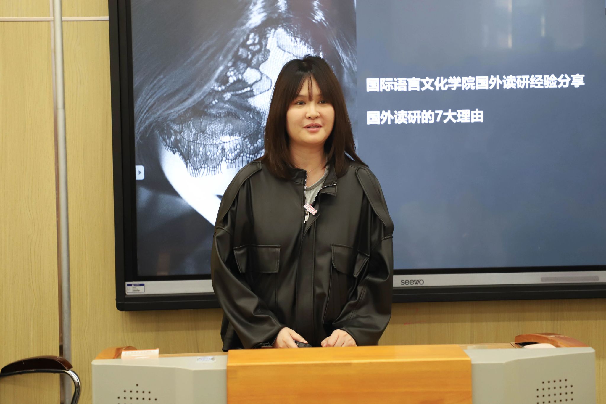 两位往届优秀毕业生通过线上线下结合的形式依次分享了自己的考研经验和方法。2023届德语专业优秀毕业生赵航程通过连线的方式分享了时间管理策略、如何构建知识体系等,强调了结合个人学习风格,灵活运用多种学习资源,提高学习效率,他表示,考研是一段自我发现和成长的过程,在这个过程中,挑战自我、克服困难学会自我思考和解决问题的能力,都将化为人生路上宝贵的精神财富。2021届西班牙语专业优秀毕业生黎彦君,在现场分享了保持自律、正确处理压力的方法,她表示,要学会如何合理分配时间,通过制定短期和长期目标来减轻压力,她鼓励大家保持乐观积极的心态,以更好的状态迎接挑战。