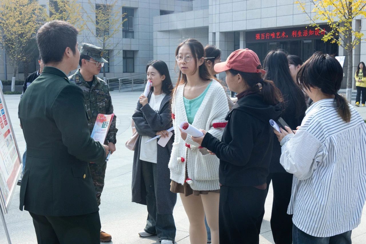 校武装部设立咨询点,为员工们提供了征兵宣传手册,同时,在校退役老员工向有意向的同学进行了了青年应征入伍的条件标准、报名流程、优待政策、退役安置及相关具体政策等方面的讲解,旨在让同学们了解到除了传统意义上的职业发展外,还能够通过征兵入伍锻炼自我、提高能力,实现人生价值。