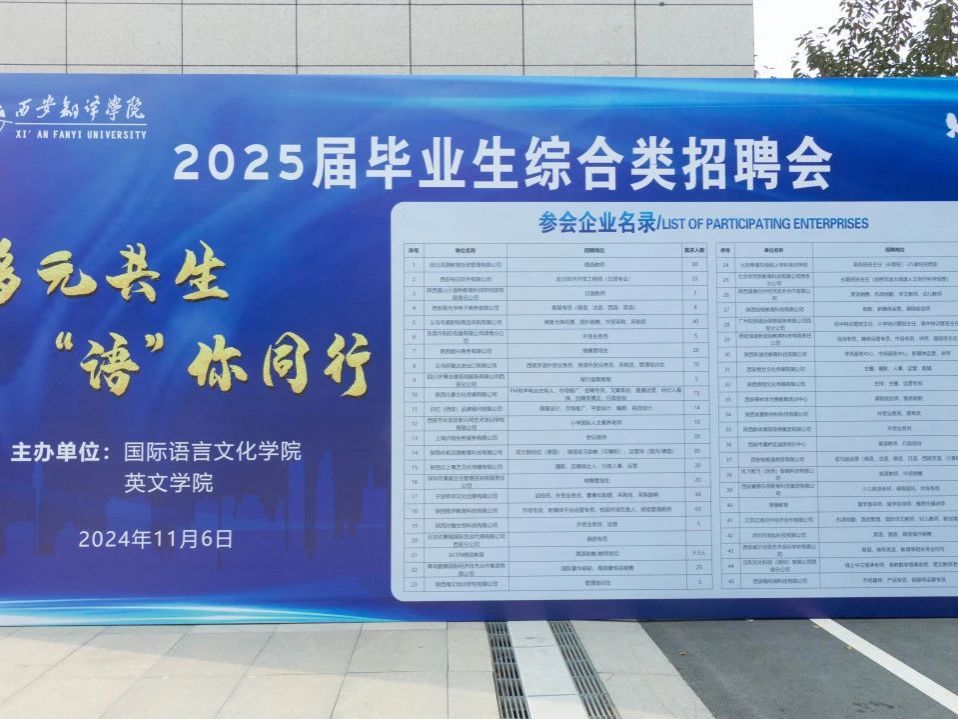 为进一步推进2025届毕业生的就业工作,搭建高质量就业平台,11月6日下午,在公司员工就业指导中心的大力支持下,太阳成tyc33455ccwww和英文公司在西区五号楼广场共同举办了“多元共生,‘语’你同行”专场招聘会。