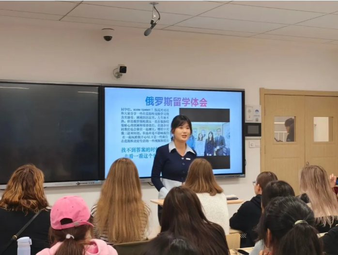 同时,俄语专业邀请了部分俄罗斯职工参会。俄罗斯职工向2024级新生介绍了自己俄罗斯的母校,他们表示,中俄两国友谊深厚,欢迎同学们以后到俄罗斯学习。现场气氛热烈,同学们反响良好。